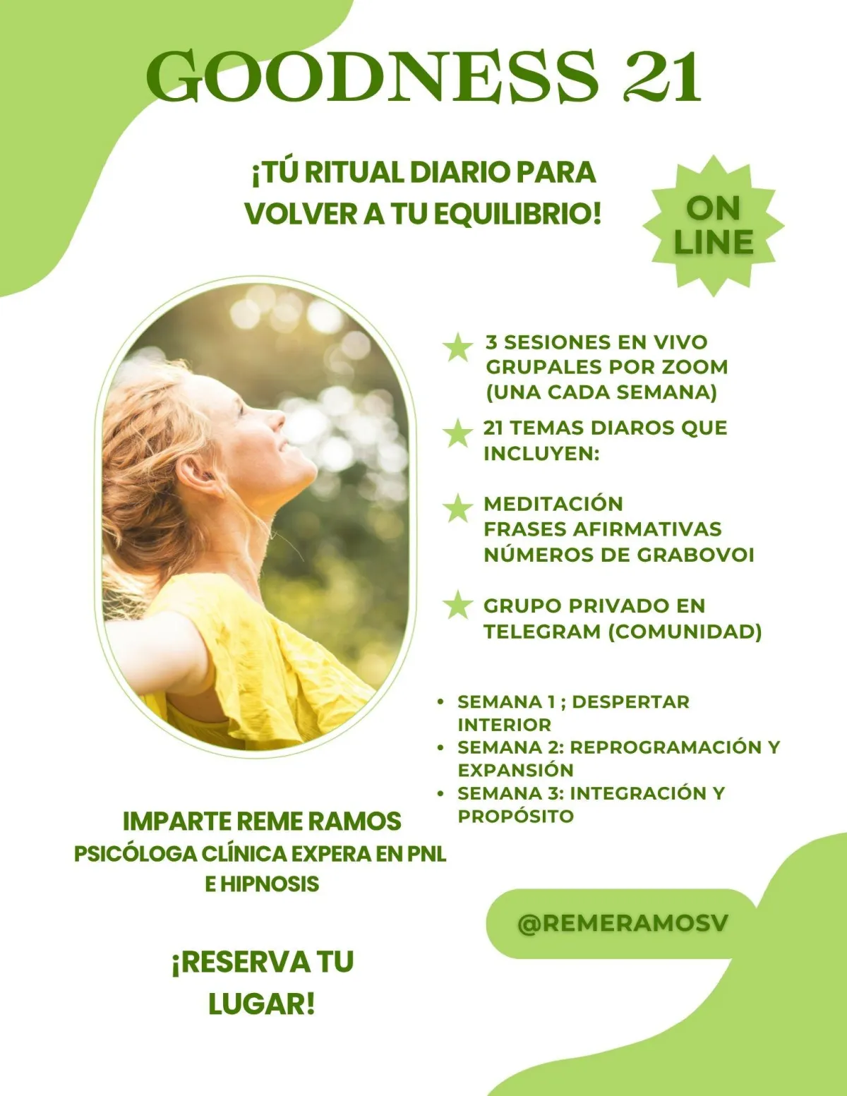 GOODNESS 21 no es un curso más, es un espacio diario de reconexión contigo misma.
